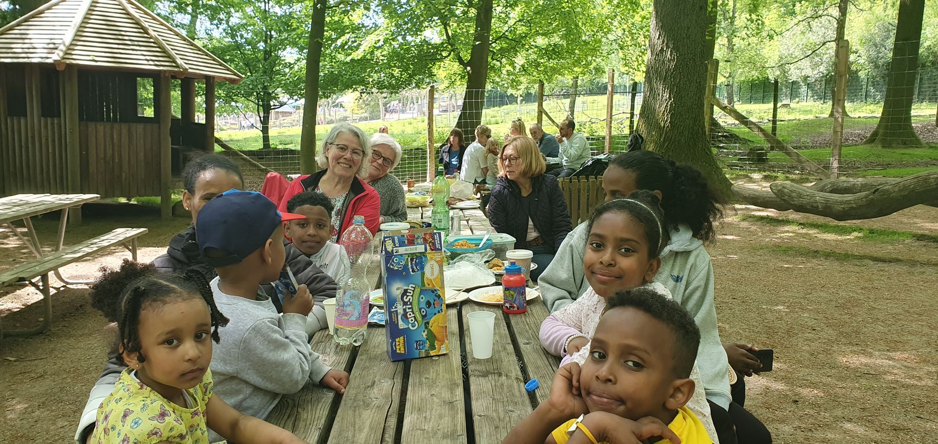 33 Kinder und ihre Eltern aus den verschiedensten Nationen verbrachten am Freitag einen erlebnisreichen und entspannten Tag auf dem Ketteler Hof in Haltern. Diesen Ausflug konnte der AK Asyl mit Hilfe von Spendengeldern organisieren. Die muslimische Ahmadiyya Gemeinde in Bocholt spendete die Einnahmen ihres charity-walks 2022 zu diesem Zweck. Mit Hilfe weiterer Spenden und eines kleinen eigenen Kostenbeitrags konnten die Kinder, ihre Eltern und drei Begleiterinnen vom AK Asyl einen abwechslungsreichen Tag auf dem weitläufig angelegten Outdoor-Gelände erleben. Die Teilnehmer*innen brachten auch etwas für ein gemeinsames, international gefärbtes Picknick mit, das allseits gut ankam. Auch das Wetter spielte mit. So war es ein insgesamt gelungener Tag, an den sich sicher alle gerne erinnern werden.