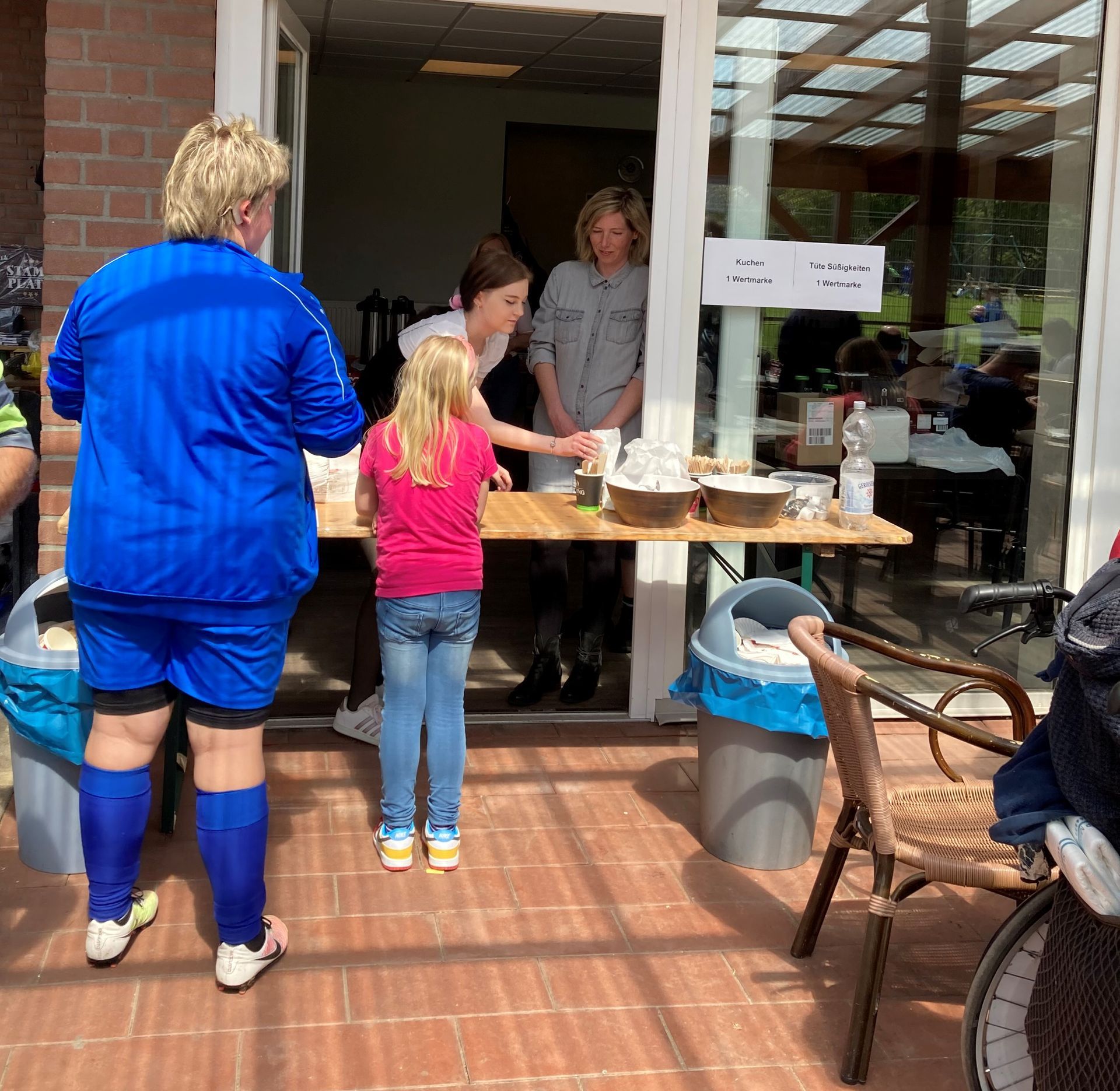 die jüngsten Besucher der alte Krämerladen mit seinen bunten Blechdosen, den geheimnisvoll anmutenden Schachteln und den blechernen Werbeschildern. Aus großen Gläsern, gefüllt mit Süßigkeiten verschiedenster Art, ließen sich staunende Kinder dicke Schaumerdbeeren, saure Frösche, Brausetütchen, Lakritzschnüre und vieles mehr einzeln und individuell zusammen-stellen, um sich dann draußen in der Sonne daran gütlich zu tun. Welch ein Glück, dass die alte Registrierkasse auf der Ladentheke entweder nicht mehr wirklich funktionsfähig war oder gerade eine Betriebspause einlegte. Erwachsene und Kinder nutzten jetzt die Kaffee- und Kakaopause, um sich für den zweiten Teil des Nachmittags bei einem Stück Kuchen zu stärken.